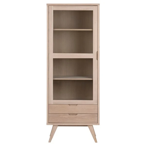 This cabinet is a modern take on classic Scandinavian design. The slender profile enables a lightweight and contemporary expression of the furniture. The cabinet features plenty of storage behind the glass door and for out-of-sight storage you can use the 2 drawers.