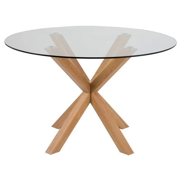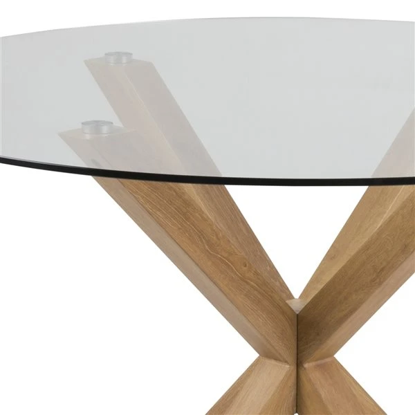 Actona Heaven Round Glass And Oak Imitation Base Dining Table