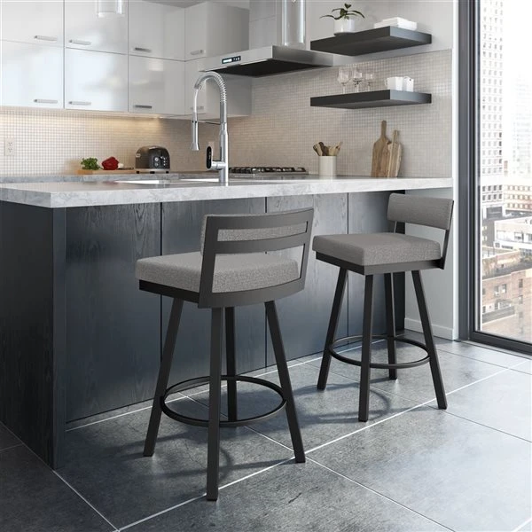 Amisco Industries Travis 26-in Swivel Counter Stool – Silver Grey Polyester/Black Metal