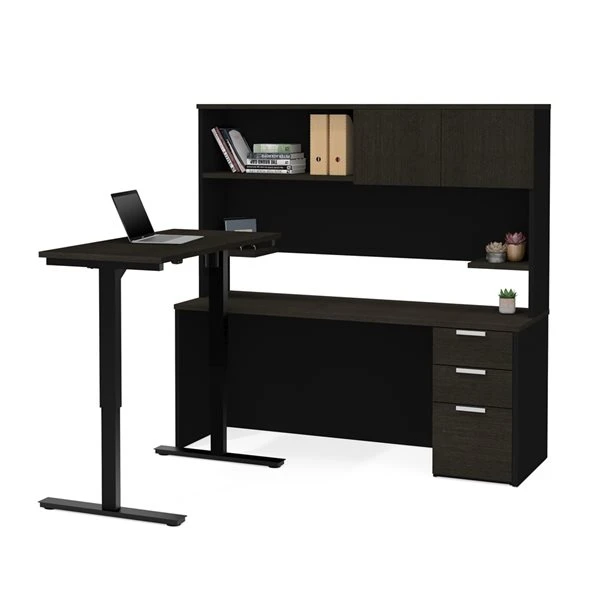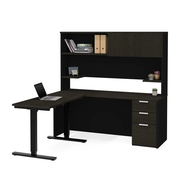 Bestar Pro-Concept Plus L-Standing Desk With Pedestal And Hutch – Deep Grey And Black