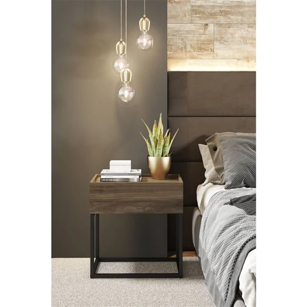 The Brassex nightstand is a charming yet functional piece you’ll love showing off. Offered with a matte finish and accented with chrome-finished legs, this end table has a contemporary elegance that’s always on trend. This impressive nightstand has clean lines and a minimalist design that will catch your eye and complement a range of décors. Designed to maximize storage and utility, this side table features a full extension storage drawer that’s perfect for storing books, night creams, and other before-bed essentials. Complete with a spacious tabletop perfect for a small lamp, framed photos, or other pieces of décor, this bedside table is a smart addition to any space.