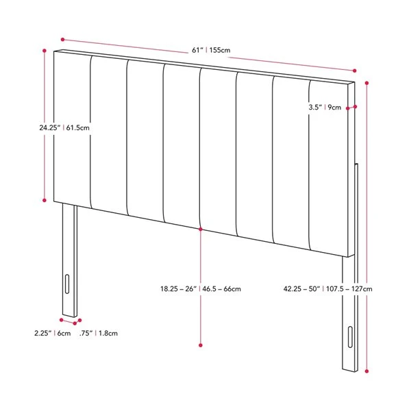 Our Helena Velvet Upholstered Queen Headboard adds instant style to your bedroom set. The clean-line silhouette and soft velvet upholstery provide a modern aesthetic, while the foam padding adds comfort. This headboard is constructed of sturdy wooden legs that tuck in behind the mattress and attach easily to the frame. With adjustable leg height, this headboard can fit virtually any standard Queen-sized frame. Whether you’re looking for a modernizing or vibrant addition to your bedroom, this well-designed headboard will bring your room together.
