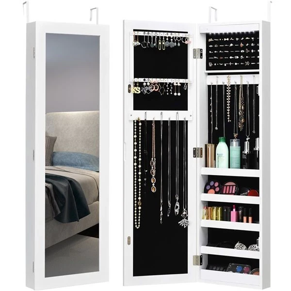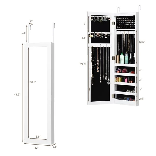 Costway White Over-The-Door Jewelry Armoire With LED Light