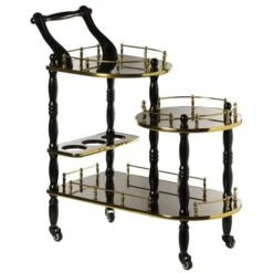 Fabulaxe 29.5-in X 15.75-in X 36.5-in Black/Gold Wood Base Service Cart