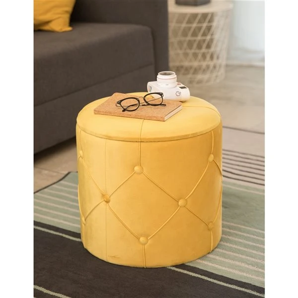 ​This is where furniture get smart. Velvet fabric composition offers a durable and comfortable seat to use as an ottoman, serving table, footstool, or vanity stool. Button tufted design around the ottoman is what makes modern style proud, welcomed into any style room decor. Top lid reveals interior storage space to store books, magazines, and blankets. It’s those small and practical decor furniture that makes all the difference.