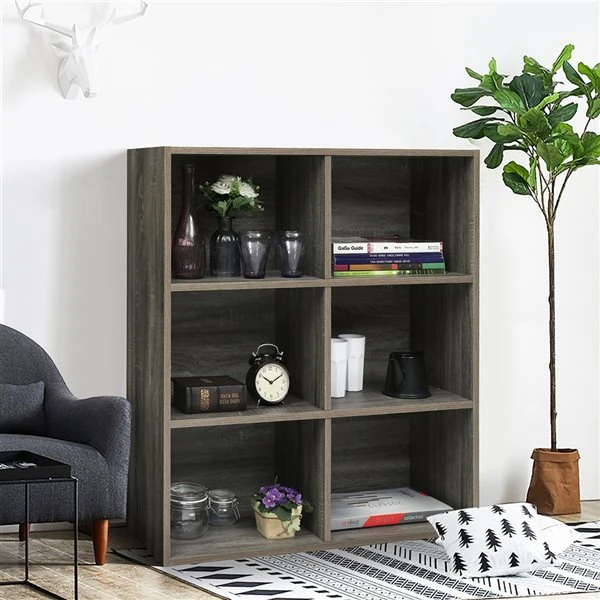 Homycasa 6-Compartment Rustic Grey Composite Wood Storage Shelf