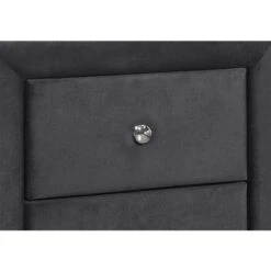 - Upholstered in a rich dark grey velvet-look fabric with a chrome-finished metal drawer knob