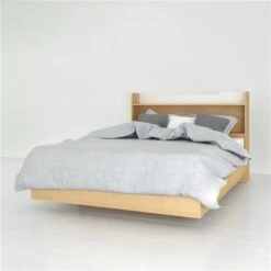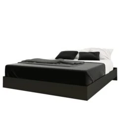 This queen size, platform bed can be paired with different Nexera queen-size headboards to create a complete bed set. Its unique design gives the impression that the bed floats above the ground, giving the entire room an airy feel. This bed also features a unique metal and hardwood slat construction allowing for easy assembly, sturdy construction and easier handling.