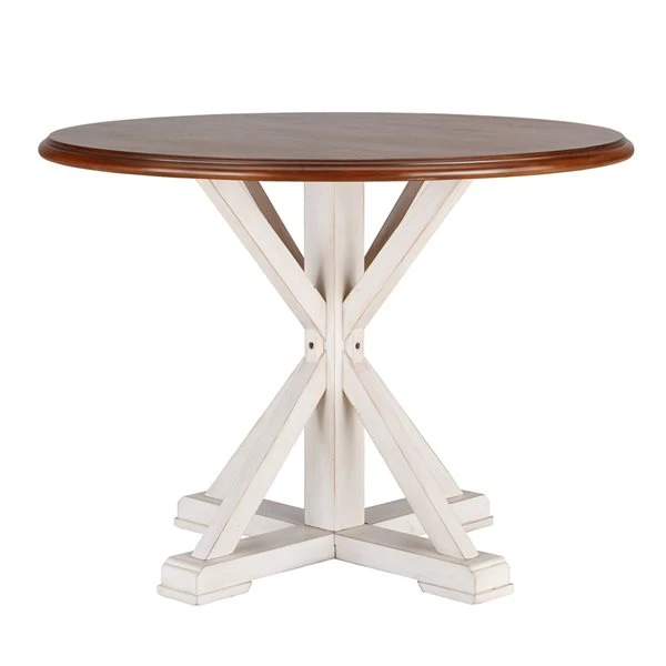 Southern Enterprises Bedelia White/Dark Brown Round Fixed Standard Wood Table With Antique White Wood Base