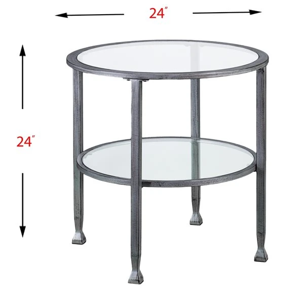 Southern Enterprises Lea Silver/Distressed Black Glass Round End Table