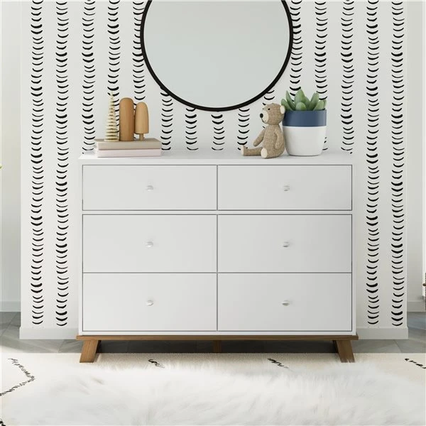 - This 6-drawer double dresser offers families a modern storage solution that is easy to match with any style of nursery or kids bedroom