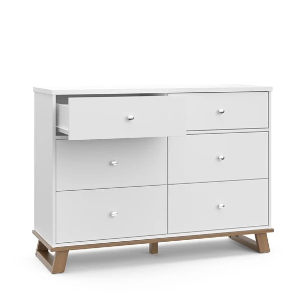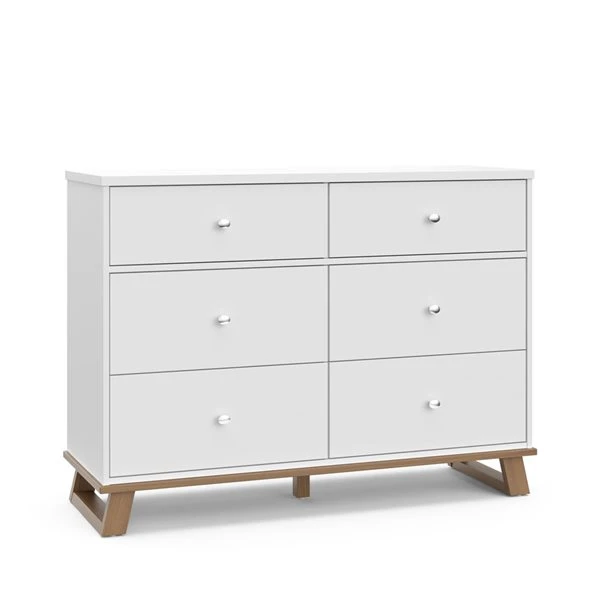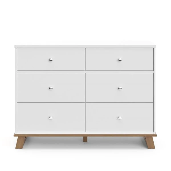 Storkcraft Modern 6 Drawer Double Dresser – White/Vintage Driftwood