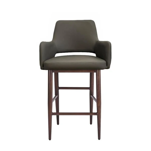 Isaak is the height of strength and comfort. A sturdy stool with character. PU upholstery and black walnut metal frame (faux wood) make a great addition to any modern interior.