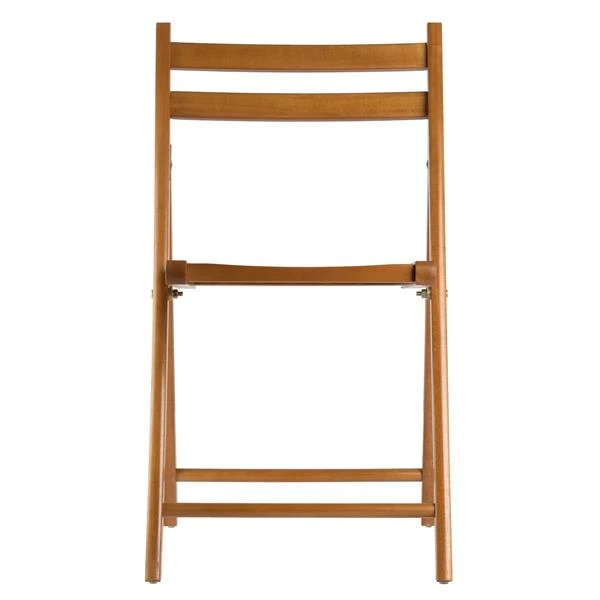 This 4-piece set of solid wood chairs is an indispensible addition to any home. Pull up the chairs for a card game or for extra seating around the dining table. The smooth seats are slatted and the double-bar backs give added support. The folded chairs tuck nicely against one another for compact storage. No assembly required.